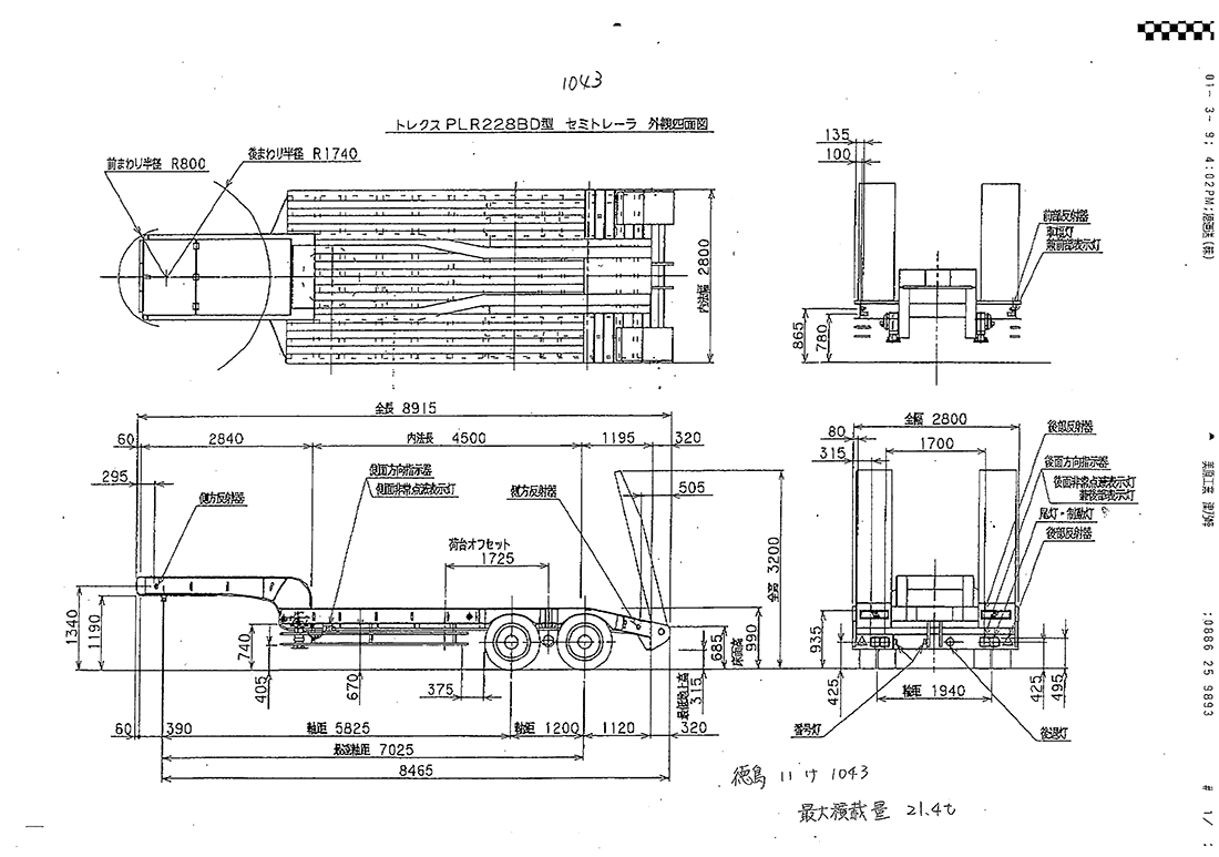 16輪ステアリング装置付伸縮低床マルチトレーラー